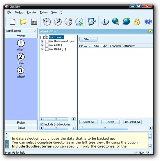 DiscSafe - удобная программа для создания резервных копий данных. Для вашего удобство возможно задать день и промежуток времени, для сохранения данных. Возможна прямая запись примо на CD-R(W), DVD-R(W, DVD+R(W) и DVD-RAM.