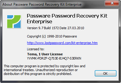 Passware Kit Enterprise - набор инструментов для подбора или определения паролей к файлам (более 100 видов), созданными самыми известными в мире программами: Office, Excel, Word, Windows XP/2000/NT ,Access, Outlook, Outlook Express, Exchange, WinZip PKZip ZIP, WinRAR RAR, VBA Visual Basic modules, Internet Explorer/ EFS - Encrypted File System, FileMaker/ Acrobat, Quicken, QuickBooks, Lotus 1-2-3, Lotus Notes, Lotus, Organizer, Lotus WordPro, Quattro Pro, Backup, Project, MYOB, Peachtree, Paradox, ACT!, Mail, Schedule+, Money, WordPerfect и MS Office 2007, а также определения ключа Windows XP/2000/NT/7.