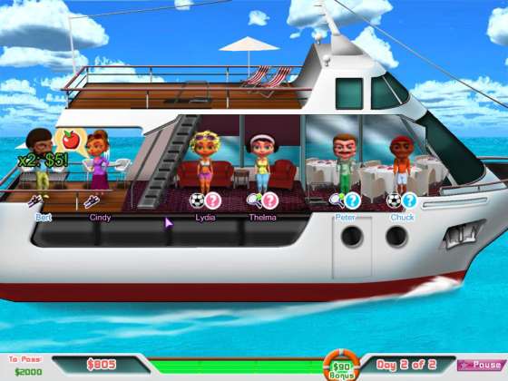 Любовь На палубе! Днем Вам предстоит сводить пассажиров чтобы найти их совместные интересы. А вот ночью позвольте вашим парам потанцевать и быть может Вы станете свидетелем рождения нового курортного романа. Заработайте денег на удивительные модернизации для Вашего судна и в конечном счете расширьте Ваш флот большими лайнерами. Проявите настоящие способности Пассажирского Директора!