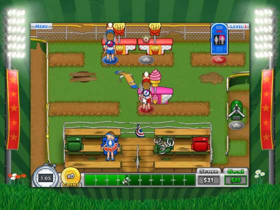 Half-Time Hustle - это увлекательная игра в стиле "diner dash". Помогите Меган найти средства для лечения ее отца. Для этого ей предстоит продавать хот-доги и напитки, обслуживая футбольных фанатов.