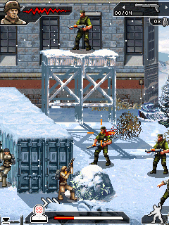Новый первоклассный 2D-шутер с шикарной графикой и анимацией! Сражайтесь с противником на протяжении 11 уровней в разных частях света, используя разннобразное оружие. Захватывающий геймплей и система сотрудничества с товарищами: теперь ваш товарищ может прикрыть вас от пуль противника. Набирайтесь игрового опыта, убегая от вертолётов и гоняясь за злодеями. Размеры экранов: 128×160, 176×220, 240×320, 360×640.