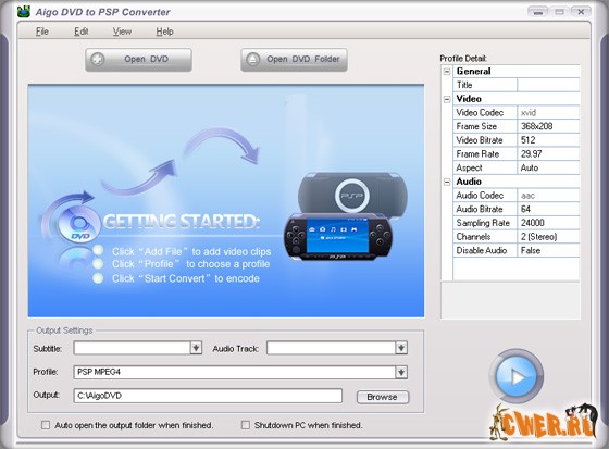Скачать Aigo DVD to PSP Converter v2.0.11 (5,7 МБ):