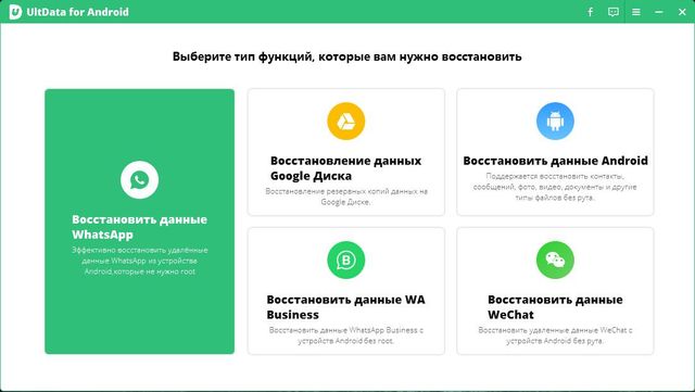 UltData for Android (Android Data Recovery) – мировой лидер по восстановлению данных из ОС Android. Программа была специально создана для восстановления контактов, сообщений, истории звонков, фотографий и видео из любых устройств Android, смартфонов или планшетов: Samsung, HTC, Nexus и др., в случае удаления, сбрасывания до заводских настроек, сброса памяти только-для-чтения, рута и т.д.