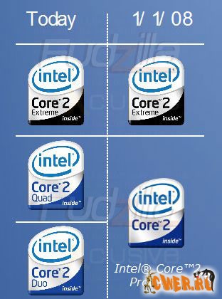 Ситуация с новыми логотипами для настольных процессоров Core 2 Duo и Quad тоже весьма запутанная. Логотип Core 2 Extreme останется прежним, однако это может ввести потребителей в заблуждение, так как все новые процессоры являются 4-ядерными. С выходом процессоров Nehalem, возможно, ситуация изменится. Вместо Core 2 наверняка появится Core 8 или что-нибудь в этом роде.