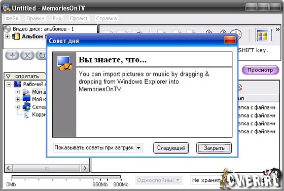 Вышел новый релиз от компании CodeJam Pte - MemoriesOnTV 4.1.1(2422). Добавив Ваши фотографии и/или видеоклипы (mpg, avi, mov, mp4) - можно создать и записать собственные качественные DVD, VCD или sVCD со своими меню, с потрясающими голливудскими переходными эффектами, музыкальным сопровождением и возможностью просмотра на стандартных DVD, VCD плеерах или на компьютере.