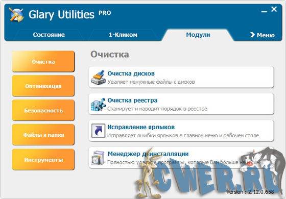 Glary Utilities – это бесплатный функциональный набор системных твикеров и утилит, для тонкой настройки, повышения общего уровня производительности и защиты ПК. Данное приложение позволяет пользователю избавиться от ненужных файлов, от устаревших регистрационных записей и истории Интернет-активности (посредством установки различных плагинов, можно добиться полной совместимости данного приложения с более чем 45 различным программами).