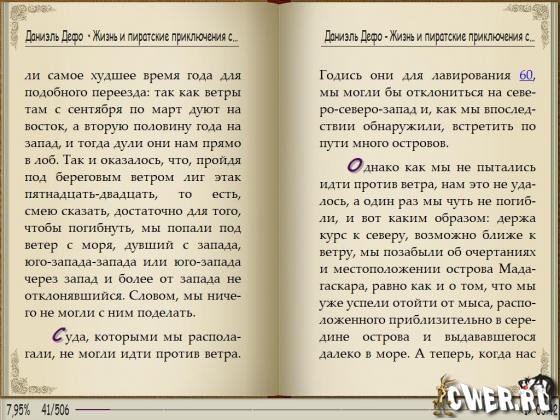 ICE Book Reader - программа для всех тех, кто предпочитает читать электронные версии книг вместо их бумажных аналогов. ICE Book Reader Professional поддерживает множество форматов (TXT, RTF, HTML, MS Word, PALM books (.PDB и .PRC), LIT), умеет читать файлы из архивов ZIP, RAR, ARJ, LZH, HA без использования внешних архиваторов.