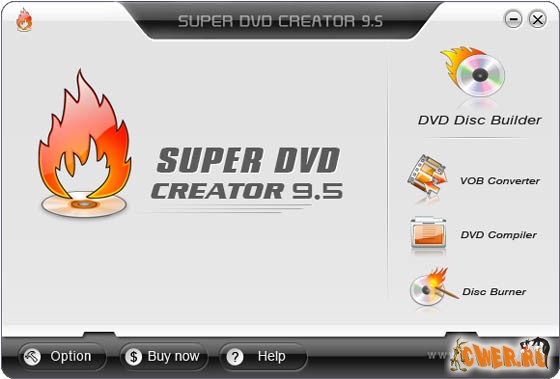 Super DVD Creator - программа для работы с видео файлами, в нее входят функции конвертирования и записи видео фильмов на DVD, конвертирует Asf, Wmv, AVI, DivX, Mpeg, Xvid, RMVB в DVD VCD SVCD.