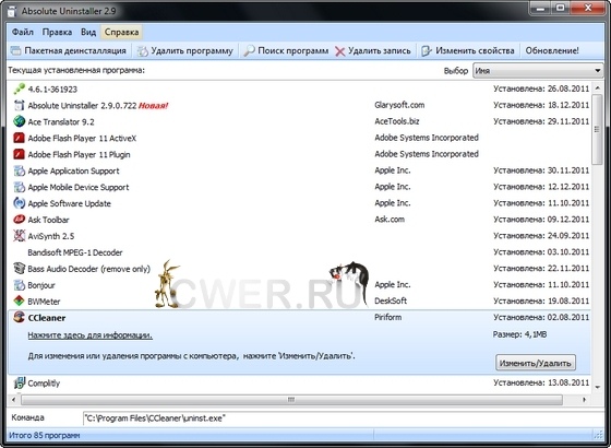 Absolute Uninstaller – это программа похожая на стандартную утилиту Установку/Удаление программ в Windows, но более мощная. Стандартное приложение установка/удаление программ не может полностью удалить приложения и очень часто оставляет недействительные ключи в реестре, ненужные файлы на жестком диске. Чем больше мусорных файлов на вашем компьютере, тем медленнее он работает. Absolute Uninstaller позволяет подмести все ваши мусорные файлы, за несколько секунд. Данная программа предоставляет более дружественный метод удаления ненужных приложений и улучшения эффективности работы вашего компьютера.