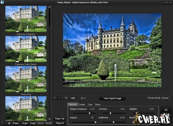 Topaz Adjust - подключаемый плагин для Adobe Photoshop. Topaz Adjust регулирует программное расширение и производит манипуляции с изображениями для Photoshop. Легко и эффективно возьмёт полный контроль над обрабатываим изображением, цветом, и деталями для того, чтобы создать ошеломляющие творческие эффекты и автоматизированной коррекции экспозиции. Topaz Adjust, используeт продвинутые алгоритмы, чтобы достигнуть уникальных эффектов в секунды.